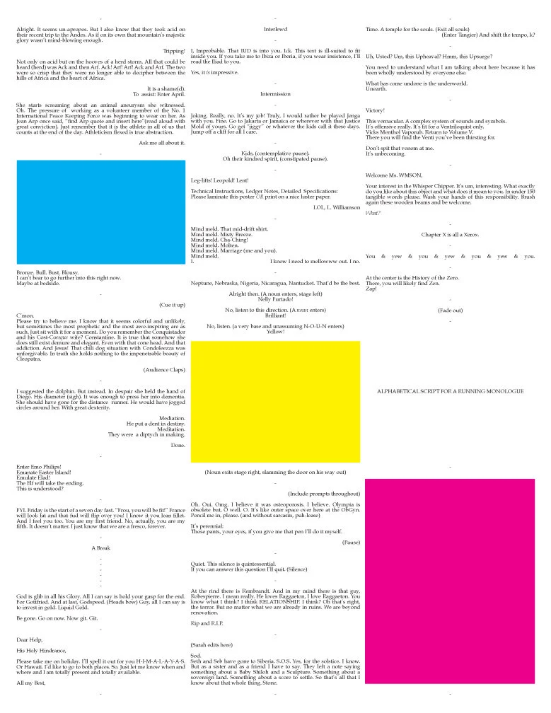 Alphabetical Script for a Running Monologue, 2008 – Lisa Williamson